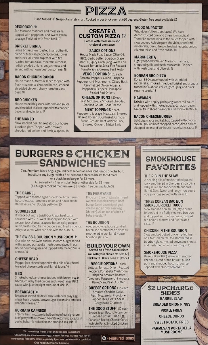 Topped with melted aged provolone, brown sugar bacon, lettuce, tomatoes, onion and house made Barrel Sauce. Double Patty for $20.